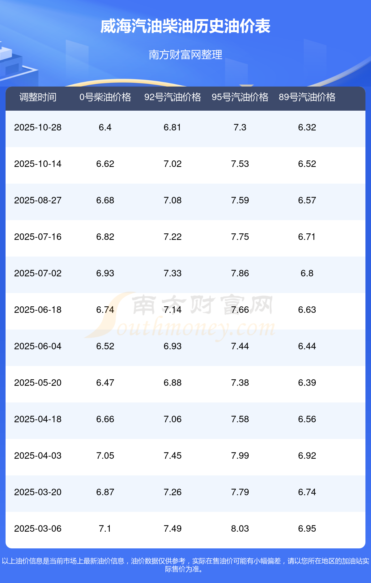 11月9日,汽油、柴油價格多少錢一升?具體為:10月28日調整后,92號汽油為6.81元,降了0.21元,降幅達2.99%;95號汽油為7.3元,降了0.23元,降幅達3.05%;89號汽油為6.32元,降了0.2元,降幅達3.07%;0號柴油為6.4元,降了0.22元,降幅達3.32%。下一輪油價調整時間11月10日24時,距離現(xiàn)在還有1.48天。