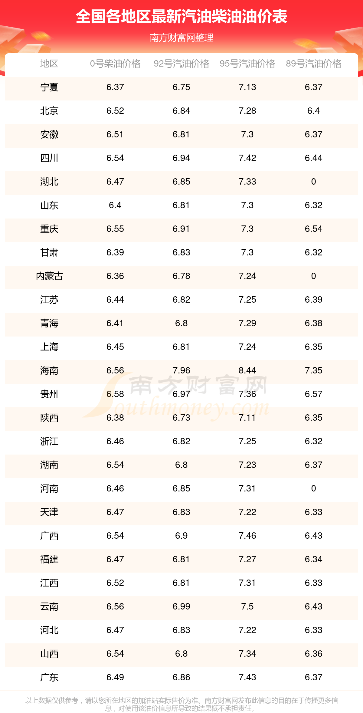 油價數(shù)據(jù)僅供參考,請以您所在地區(qū)的各加油站報價為準(zhǔn)。