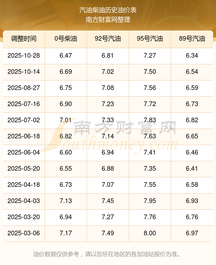 2025年95號汽油價格一覽表