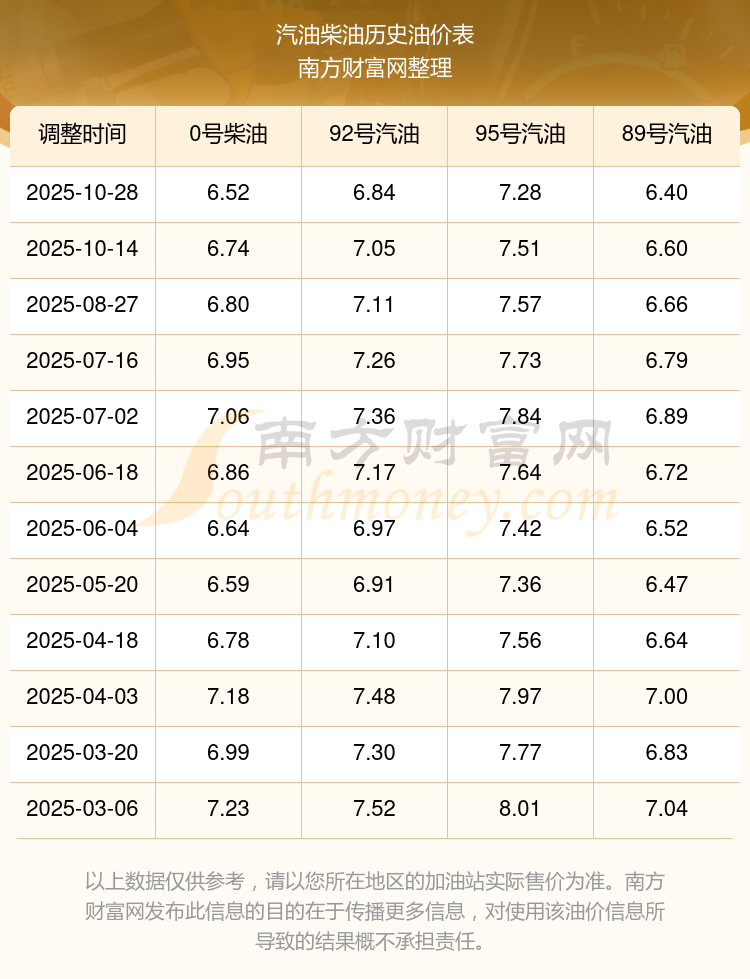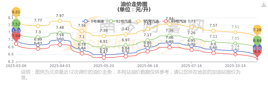 11月9日??柔95號(hào)汽油的價(jià)格為7.28元/升,這是10月28日調(diào)整后的價(jià)格,相對(duì)上次調(diào)整時(shí)間10月14日的油價(jià)7.51元每升,下跌了0.23元,下跌幅達(dá)3.063%。下一輪油價(jià)調(diào)整時(shí)間11月10日24時(shí),距離現(xiàn)在還有1.43天。