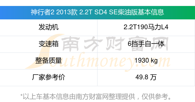 在動(dòng)力上,神行者2 2013款 2.2T SD4 SE柴油版配備的是一臺(tái)2.2T190馬力L4渦輪增壓發(fā)動(dòng)機(jī),匹配的是6擋手自一體自動(dòng)檔變速箱,燃料形式為柴油,常規(guī)整備質(zhì)量1930kg,廠家參考價(jià)49.8萬(wàn)元。