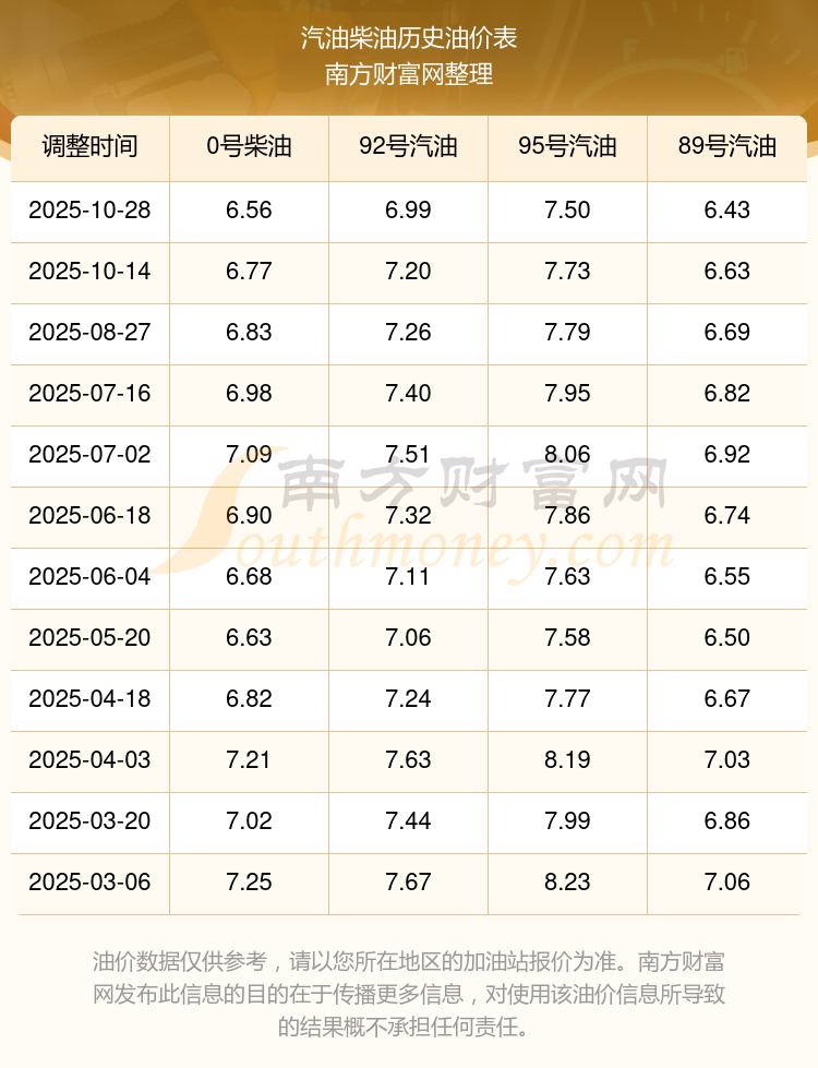 2025年95號汽油價格一覽表