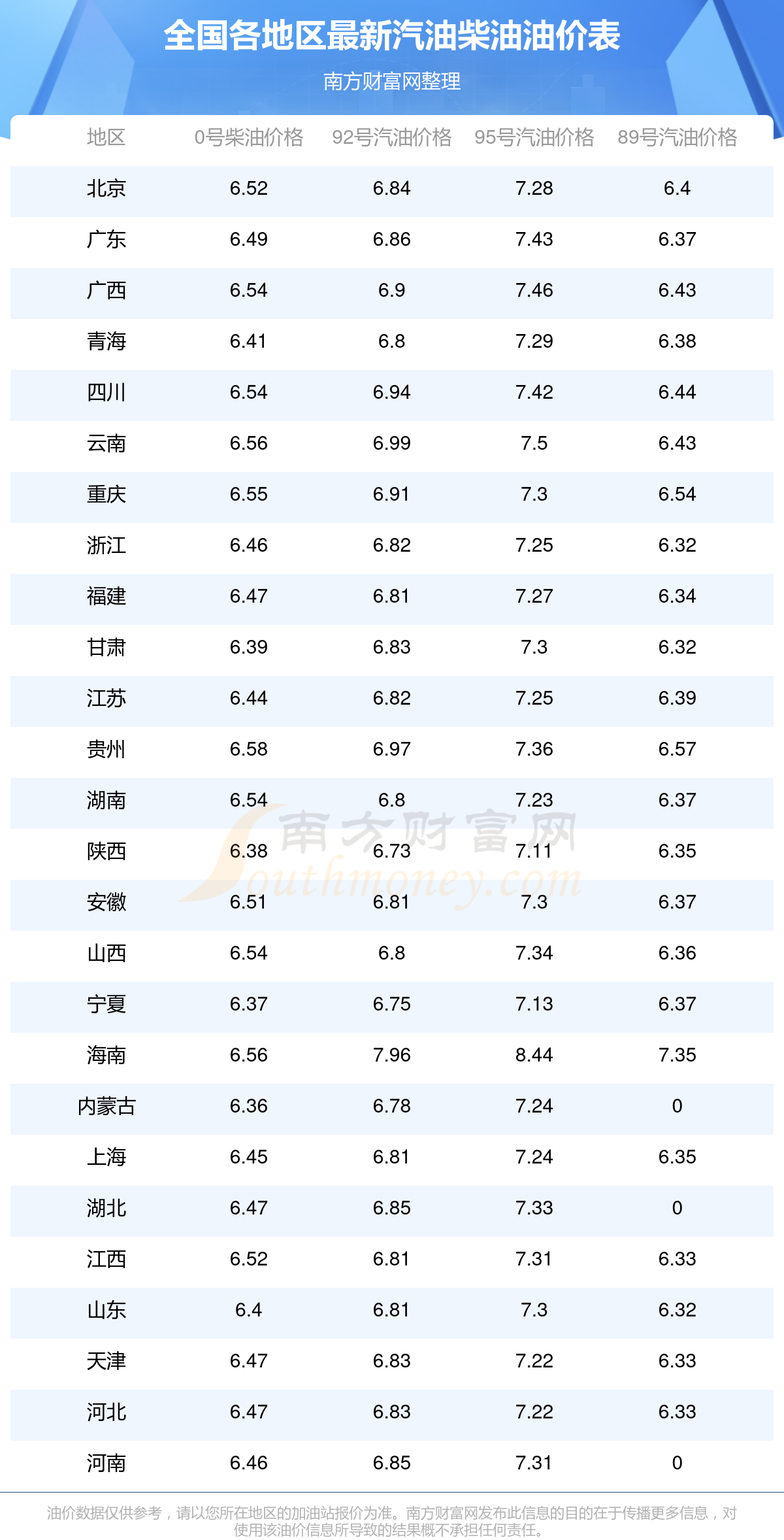 2025年11月9日全國(guó)油價(jià)調(diào)整及最新汽油價(jià)格表