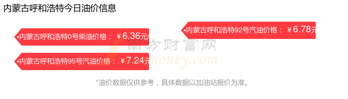 內(nèi)蒙古呼和浩特汽油柴油11月9日的價格每升多少錢?具體為:92號汽油為6.78元,下跌了0.21元;95號汽油為7.24元,下跌了0.22元;0號柴油為6.36元,下跌了0.22元,本輪油價的調(diào)整時間為10月28日。