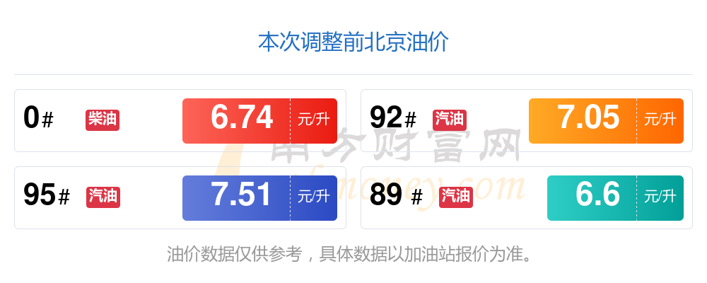 以上數(shù)據(jù)僅供參考,請(qǐng)以您所在地區(qū)的加油站實(shí)際售價(jià)為準(zhǔn)。南方財(cái)富網(wǎng)發(fā)布此信息的目的在于傳播更多信息,對(duì)使用該油價(jià)信息所導(dǎo)致的結(jié)果概不承擔(dān)責(zé)任。
