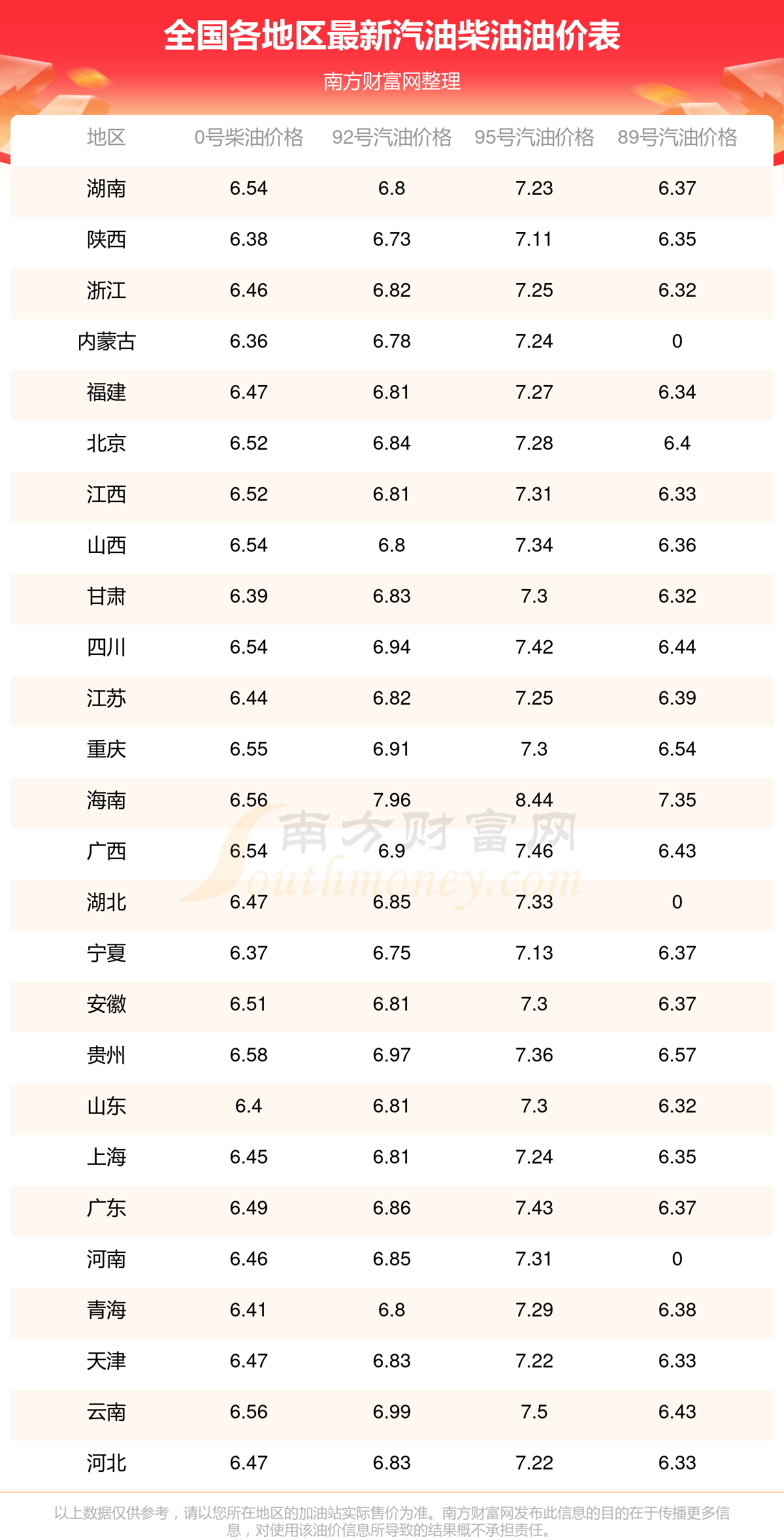 本站提供的油價數(shù)據(jù)僅供參考,具體數(shù)據(jù)以加油站報價為準。