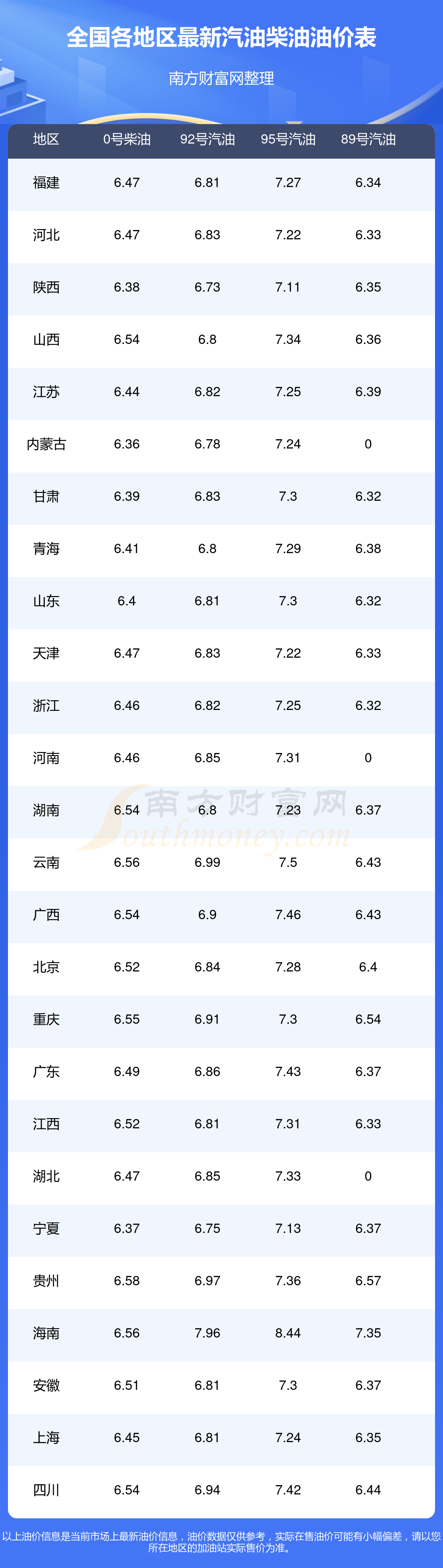油價數(shù)據(jù)僅供參考,請以您所在地區(qū)的各加油站報價為準(zhǔn)。