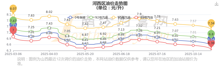 河西區(qū)11月9日92號(hào)汽油歷史油價(jià)調(diào)整走勢(shì)圖