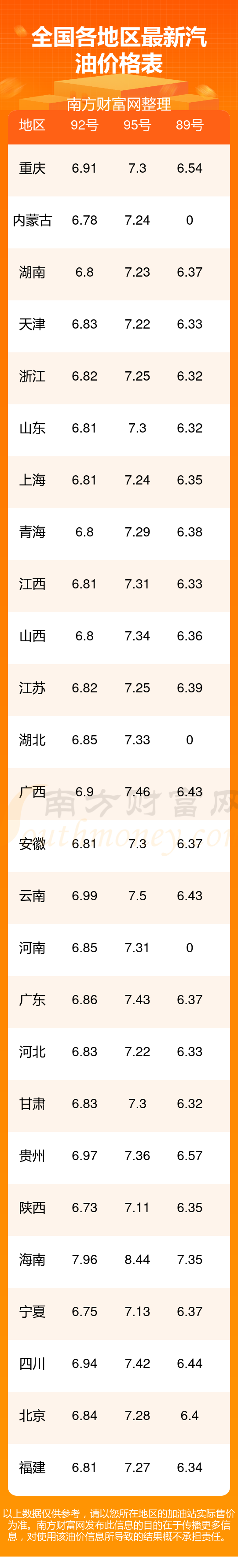 油價(jià)數(shù)據(jù)僅供參考,請(qǐng)以您所在地區(qū)的各加油站報(bào)價(jià)為準(zhǔn)。