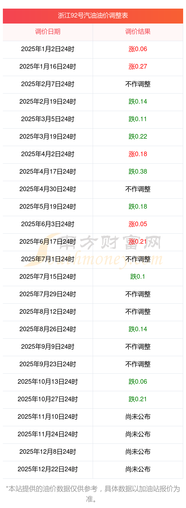 以上數(shù)據(jù)僅供參考,請(qǐng)以您所在地區(qū)的加油站實(shí)際售價(jià)為準(zhǔn)。南方財(cái)富網(wǎng)發(fā)布此信息的目的在于傳播更多信息,對(duì)使用該油價(jià)信息所導(dǎo)致的結(jié)果概不承擔(dān)責(zé)任。