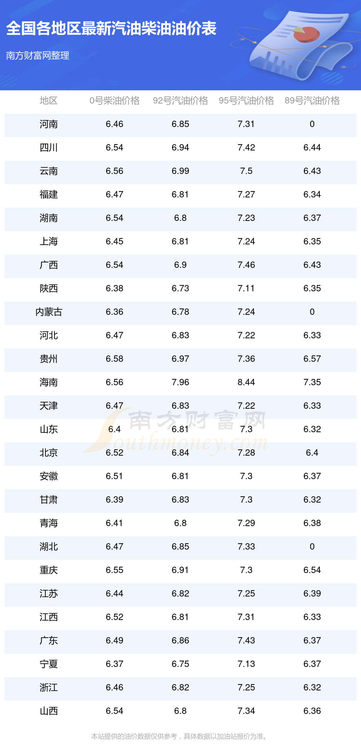 2025年11月9日全國油價調(diào)整及最新汽油價格表