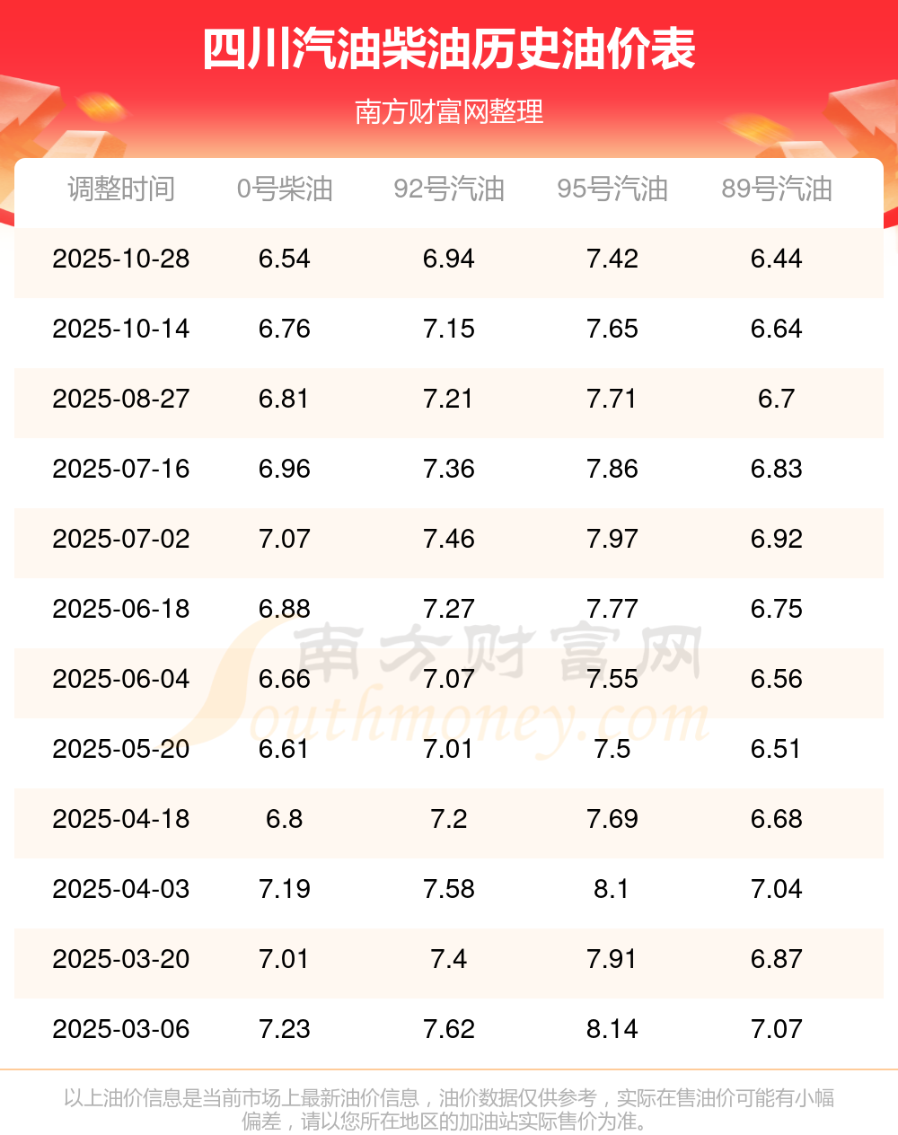 四川89號(hào)汽油油價(jià)調(diào)整表