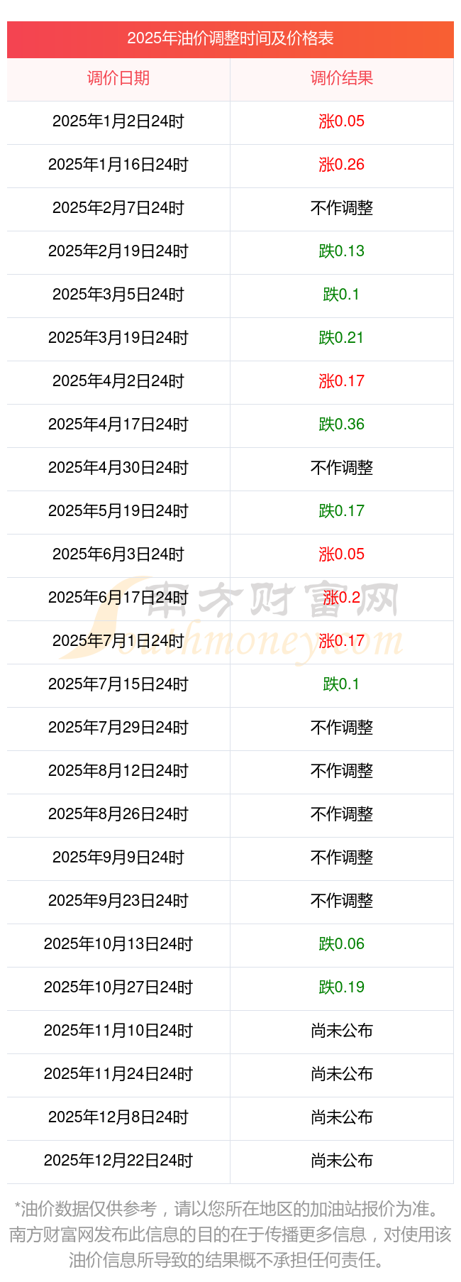 2025年定西岷縣11月9日油價(jià)調(diào)整時(shí)間表