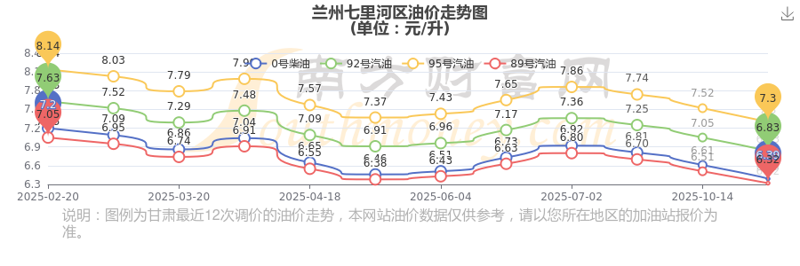 蘭州七里河區(qū)11月9日0號(hào)柴油歷史油價(jià)調(diào)整走勢(shì)圖