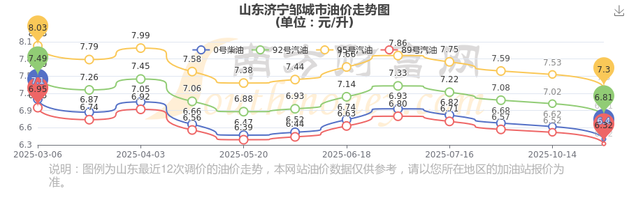 11月9日山東濟寧鄒城市0號柴油歷史油價走勢圖