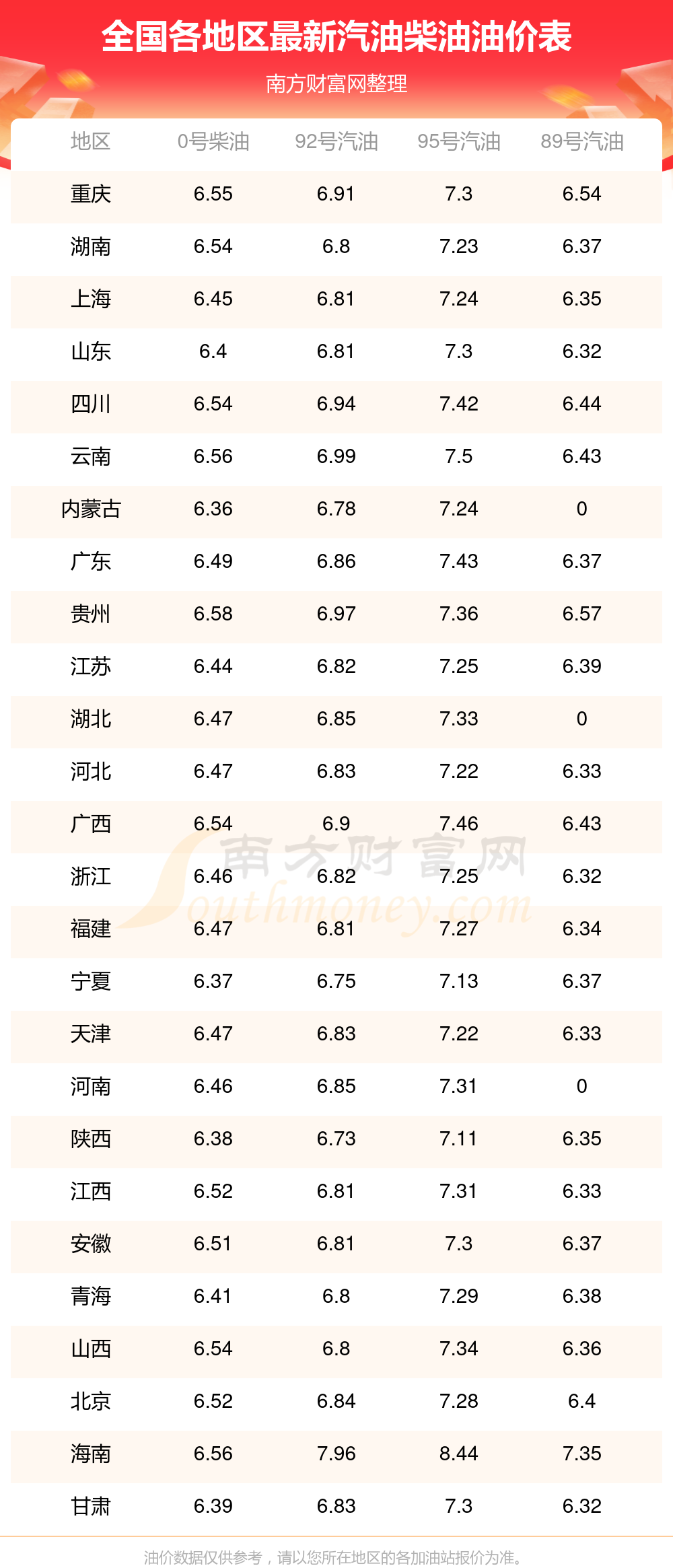 2025年11月9日全國油價調(diào)整及最新汽油價格表