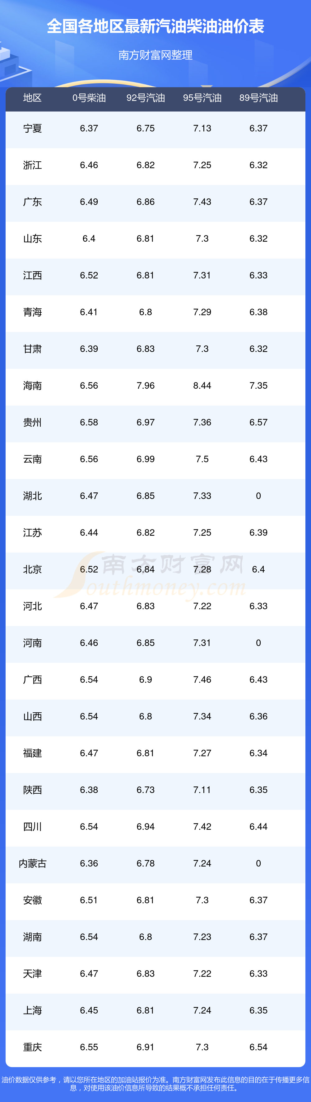 以上數(shù)據(jù)僅供參考,請以您所在地區(qū)的加油站實際售價為準。南方財富網(wǎng)發(fā)布此信息的目的在于傳播更多信息,對使用該油價信息所導(dǎo)致的結(jié)果概不承擔(dān)責(zé)任。
