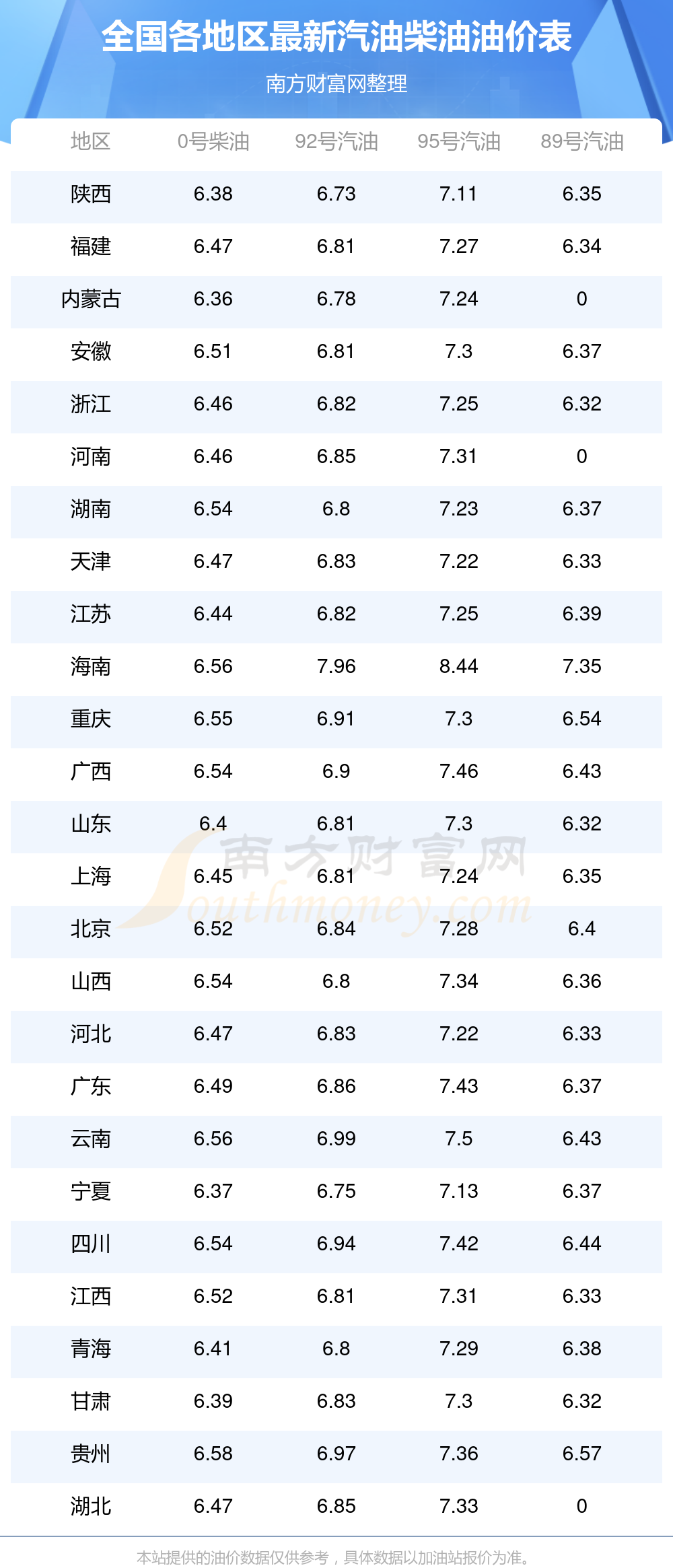 本站提供的油價數(shù)據(jù)僅供參考,具體數(shù)據(jù)以加油站報價為準(zhǔn)。