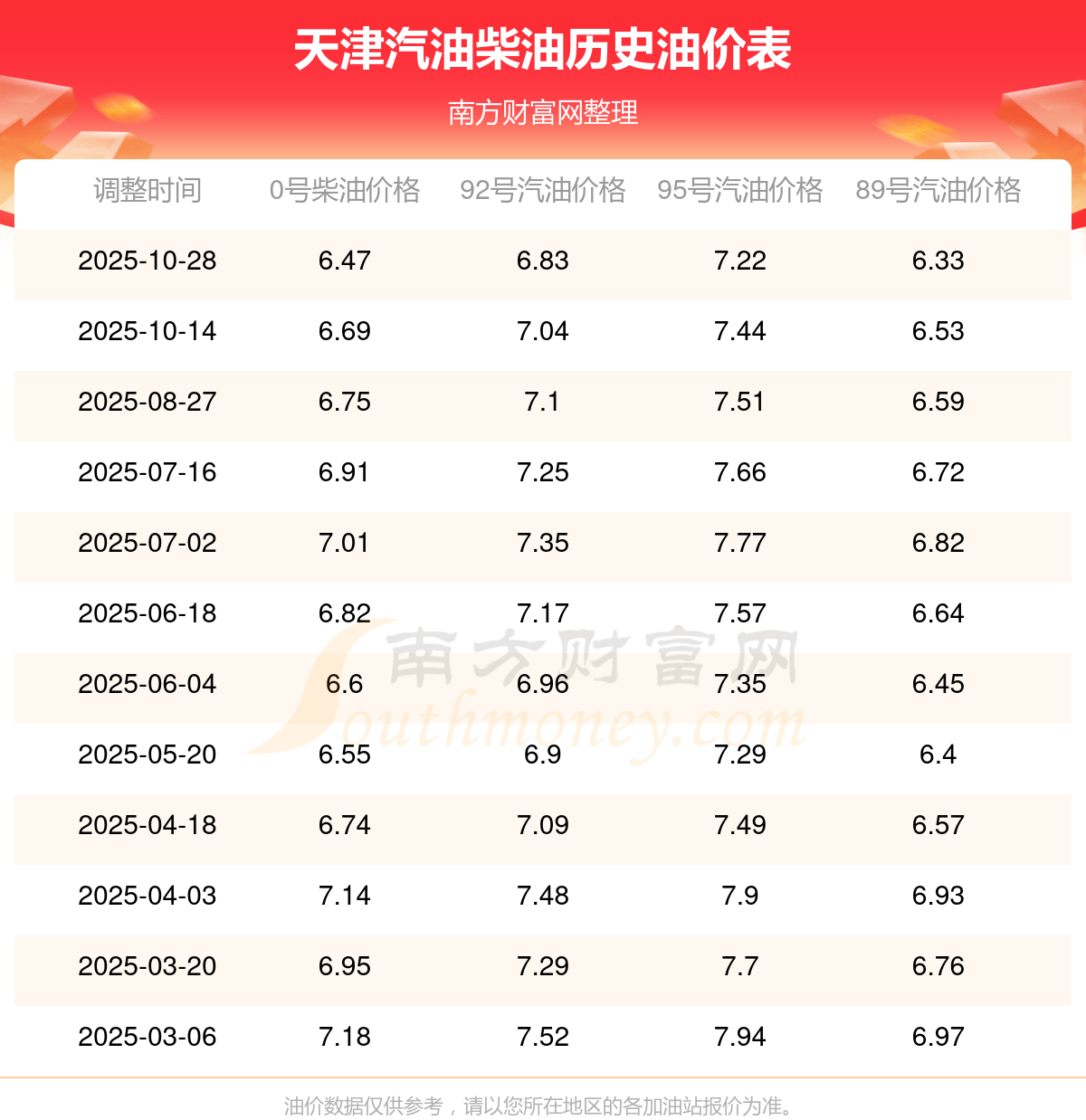 依照10月28日0號柴油最新調(diào)整價格6.47元/升來計算(以天津為例),該車型百公里的平均油費是74.34元,依照上一輪10月14日調(diào)整價格6.69元/升來計算,百公里的平均油費是76.868元,對比上一輪少花2.528元,下一輪的油價調(diào)整時間11月10日24時。