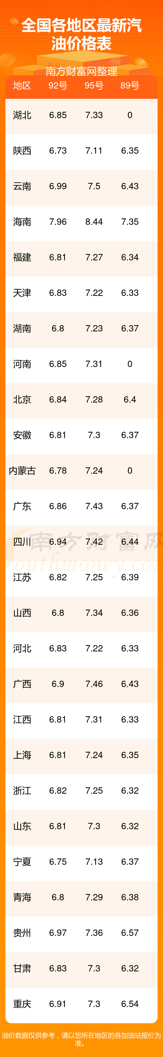 2025年11月9日全國油價(jià)調(diào)整及最新汽油價(jià)格表