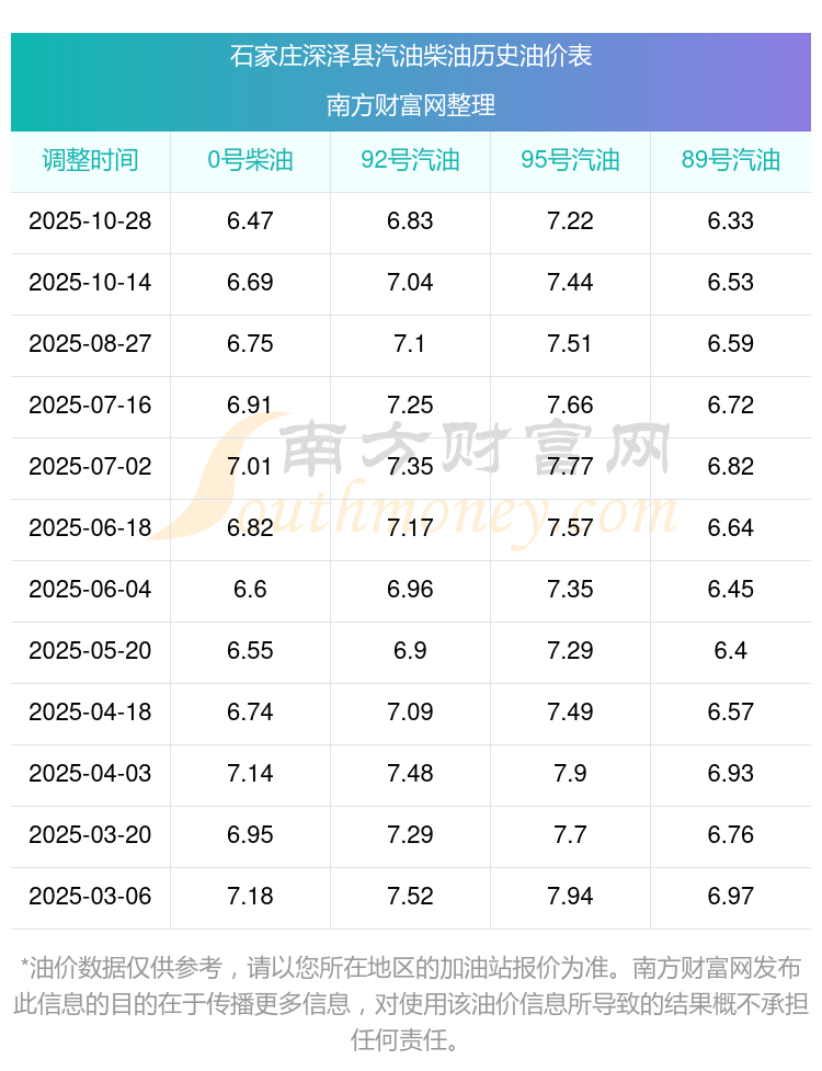 2025年石家莊深澤縣油價(jià)調(diào)整時(shí)間表