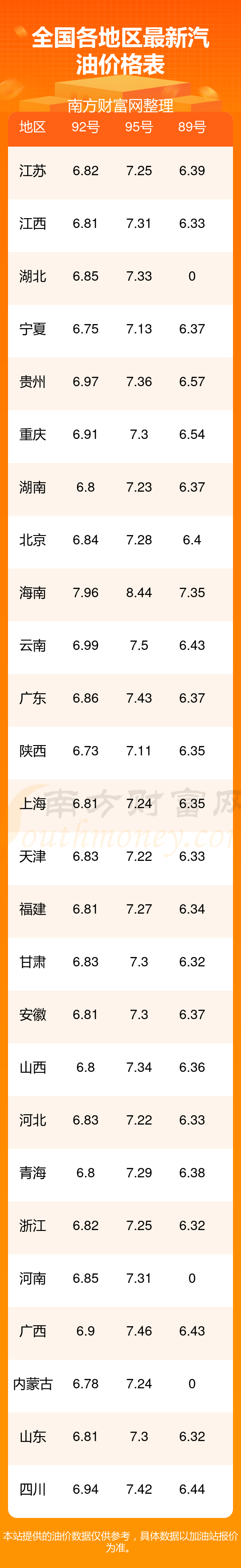 油價數(shù)據(jù)僅供參考,請以您所在地區(qū)的各加油站報價為準(zhǔn)。