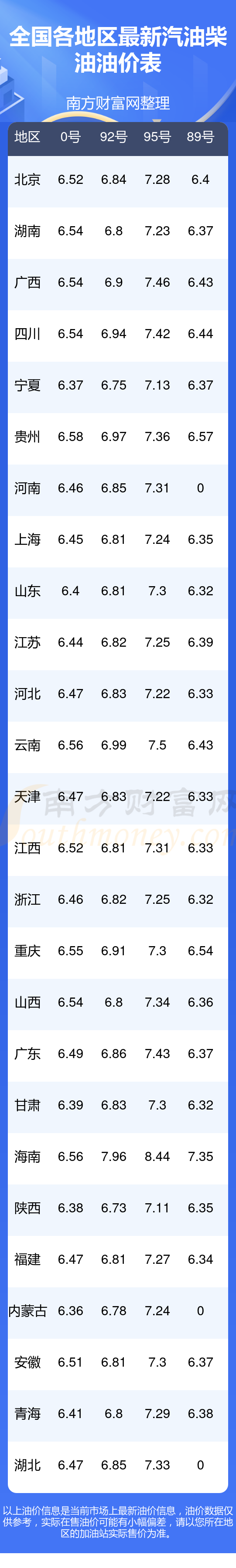 今日油價(jià)調(diào)整消息:10月28日油價(jià)調(diào)整后,11月9日全國92、95#汽油最新價(jià)格表