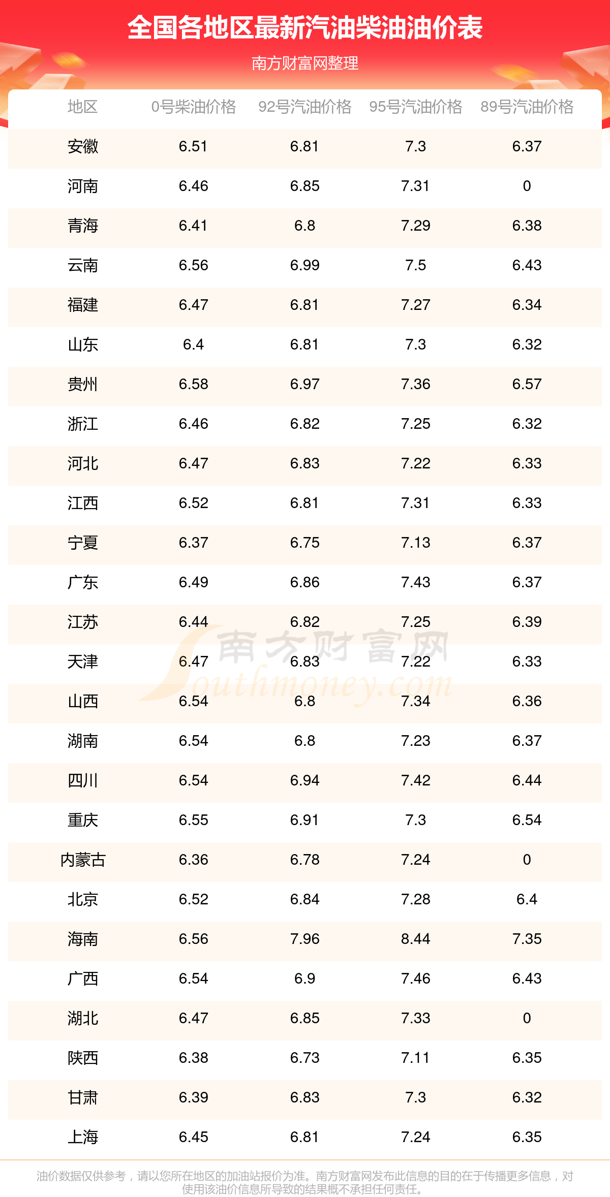 11月9日今日92號(hào)95號(hào)98號(hào)汽油價(jià)格