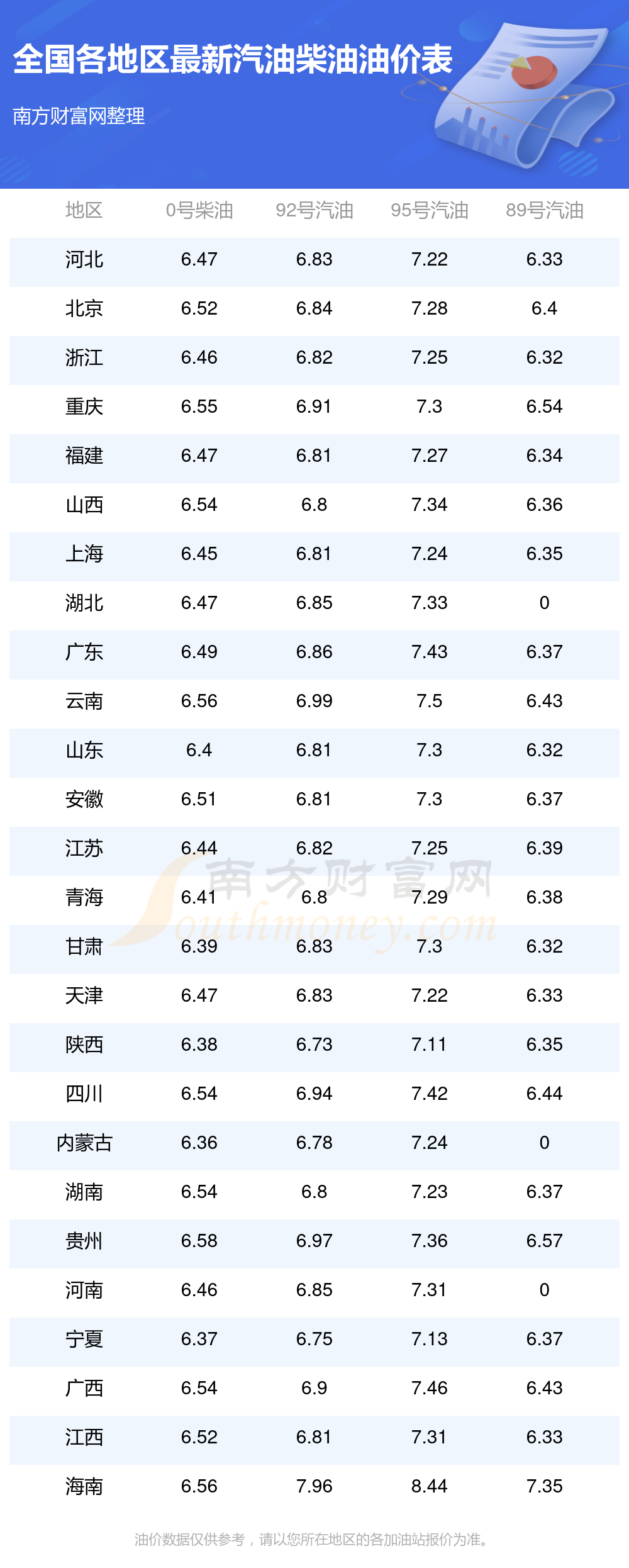 2025年全國各地區(qū)最新油價表