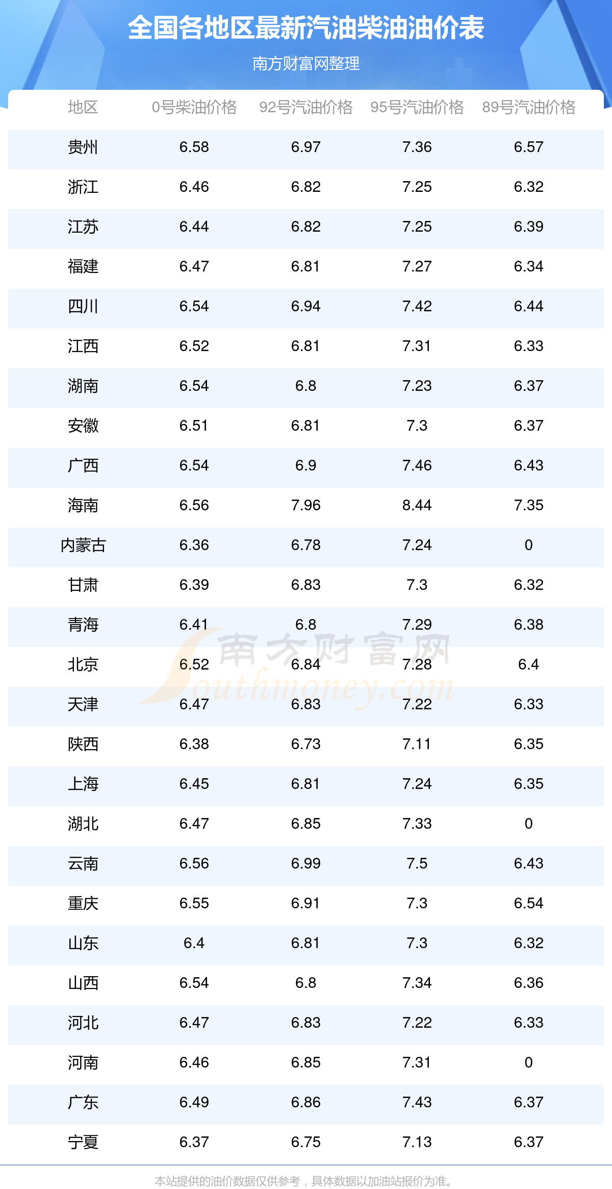 以上油價(jià)信息是當(dāng)前市場(chǎng)上最新油價(jià)信息,油價(jià)數(shù)據(jù)僅供參考,實(shí)際在售油價(jià)可能有小幅偏差,請(qǐng)以您所在地區(qū)的加油站實(shí)際售價(jià)為準(zhǔn)。