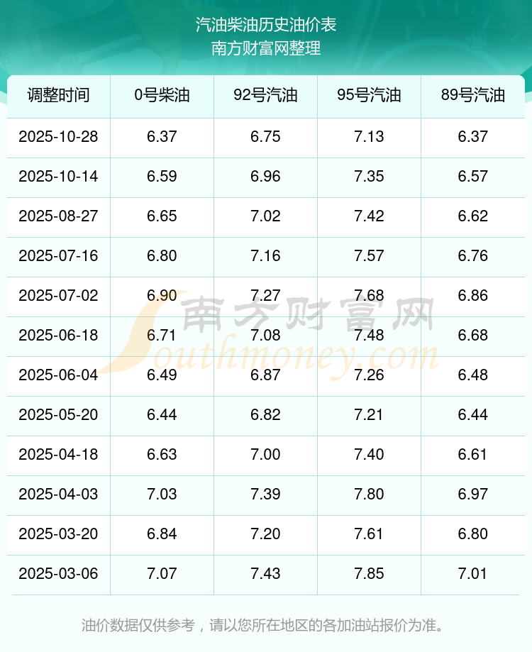 2025年汽油柴油油價(jià)調(diào)整一覽表
