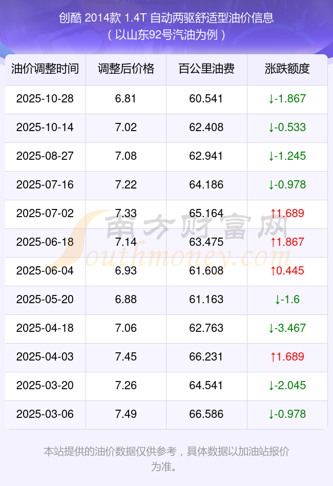 以上油耗數(shù)據(jù)由南方財(cái)富網(wǎng)整理提供,僅供參考。
