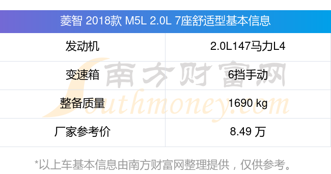 菱智 2018款 M5L 2.0L 7座舒適型動力方面,搭載的是一臺2.0L147馬力L4自然吸氣發(fā)動機(jī),匹配6擋手動擋變速箱,燃料形式為汽油,常規(guī)整備質(zhì)量1690kg,廠家參考價(jià)8.49萬元。