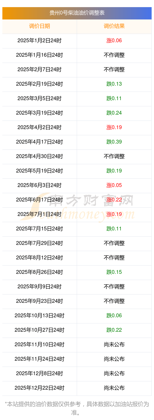 2025年貴州最新汽油價(jià)格調(diào)整一覽表