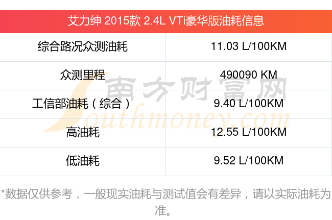 根據(jù)車主實測數(shù)據(jù),該車型低油耗為9.52L/100km,高油耗為12.55L/100km,綜合路況眾測油耗為11.03L/100km,工信部綜合油耗為9.40L/100km。