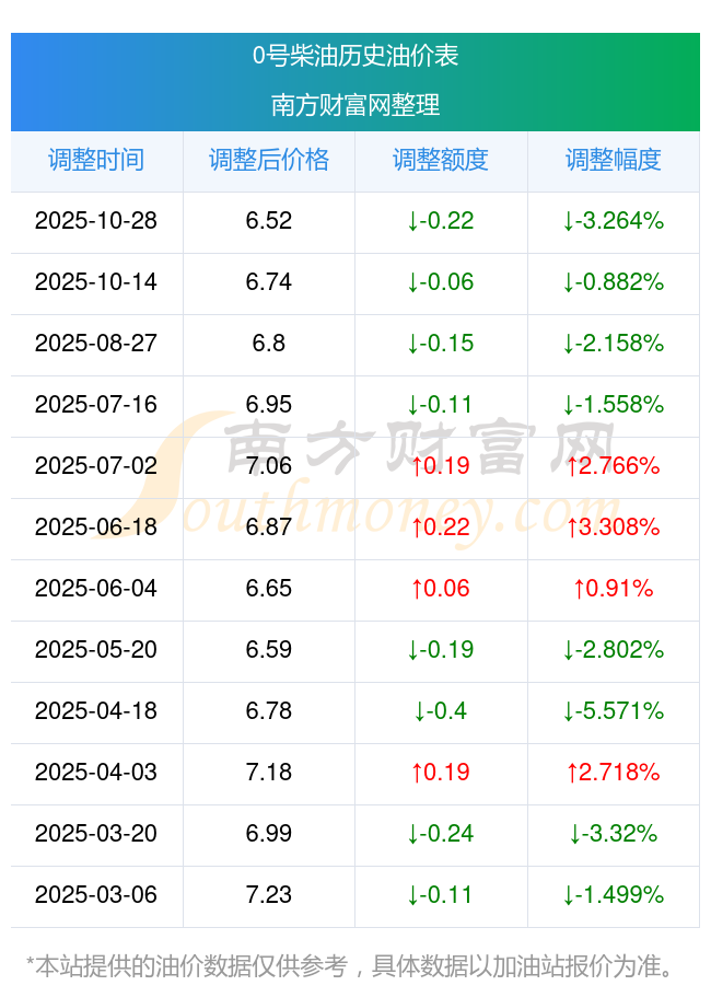 以上油價(jià)信息是當(dāng)前市場上最新油價(jià)信息,油價(jià)數(shù)據(jù)僅供參考,實(shí)際在售油價(jià)可能有小幅偏差,請以您所在地區(qū)的加油站實(shí)際售價(jià)為準(zhǔn)。
