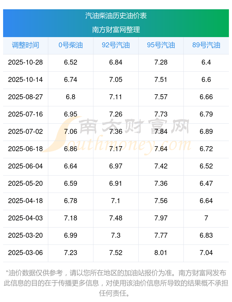 順義2025年油價調(diào)整時間表公布!(2025-11-9)