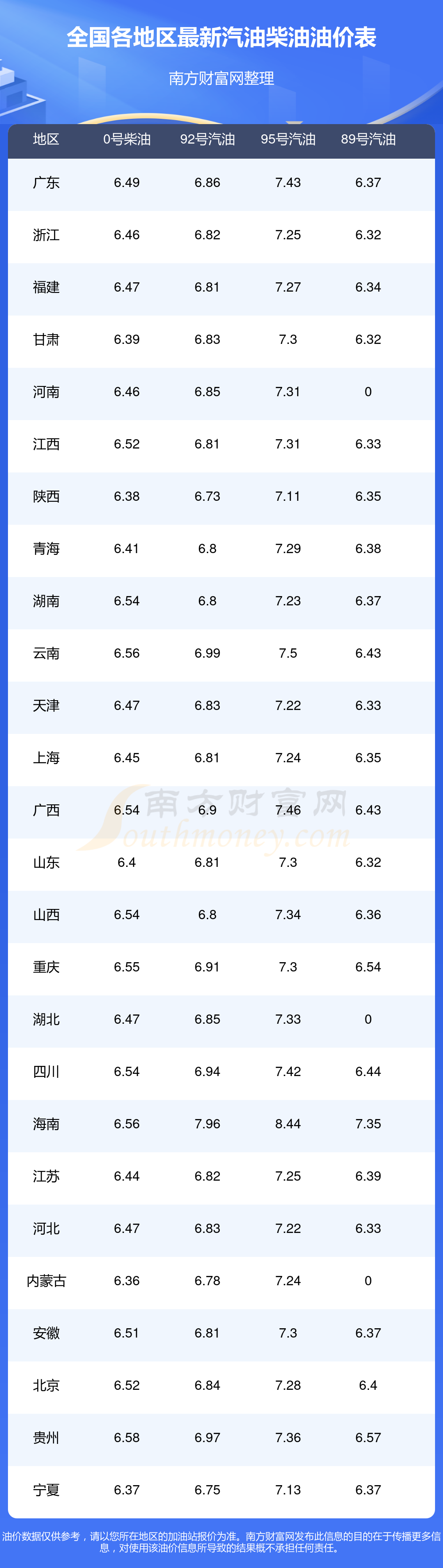 2025年11月10日全國油價調(diào)整及最新汽油價格表