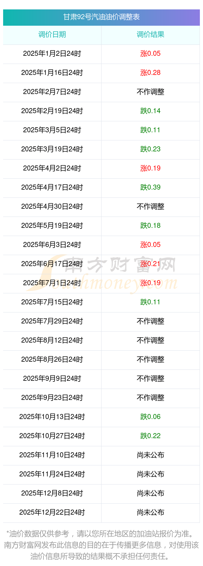 甘肅今天汽油價(jià)格調(diào)整查詢,11月10日95號(hào)汽油多少錢一升