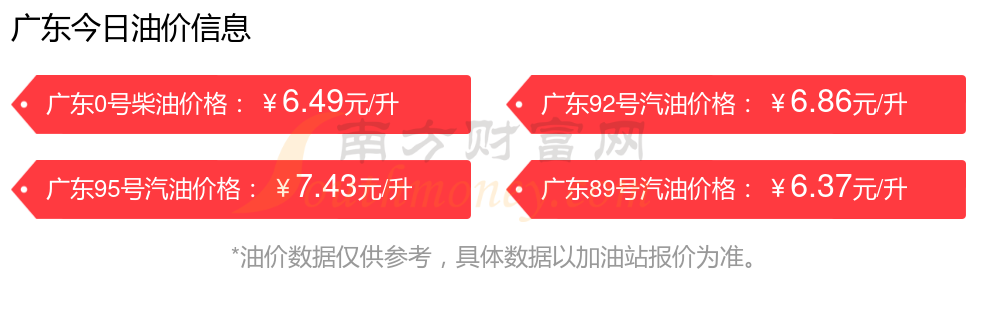 油價(jià)數(shù)據(jù)僅供參考,請(qǐng)以您所在地區(qū)的加油站報(bào)價(jià)為準(zhǔn)。南方財(cái)富網(wǎng)發(fā)布此信息的目的在于傳播更多信息,對(duì)使用該油價(jià)信息所導(dǎo)致的結(jié)果概不承擔(dān)任何責(zé)任。