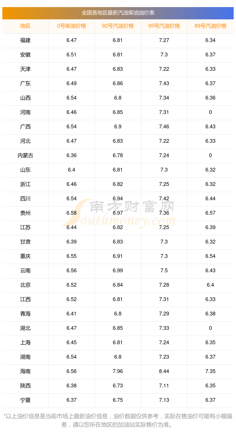 油價數(shù)據(jù)僅供參考,請以您所在地區(qū)的加油站報價為準。南方財富網(wǎng)發(fā)布此信息的目的在于傳播更多信息,對使用該油價信息所導致的結(jié)果概不承擔任何責任。