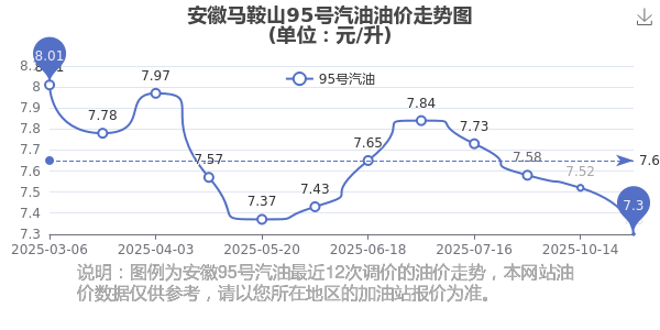 安徽馬鞍山最近12次調(diào)價(jià)的油價(jià)走勢(shì)圖