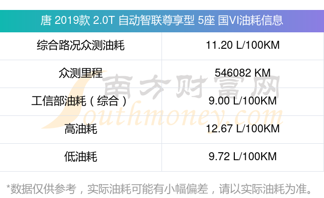 根據(jù)車主實測數(shù)據(jù),該車型低油耗為9.72升/百公里,高油耗為12.67升/百公里,綜合路況眾測油耗為11.20升/百公里,工信部綜合油耗為9.00升/百公里。