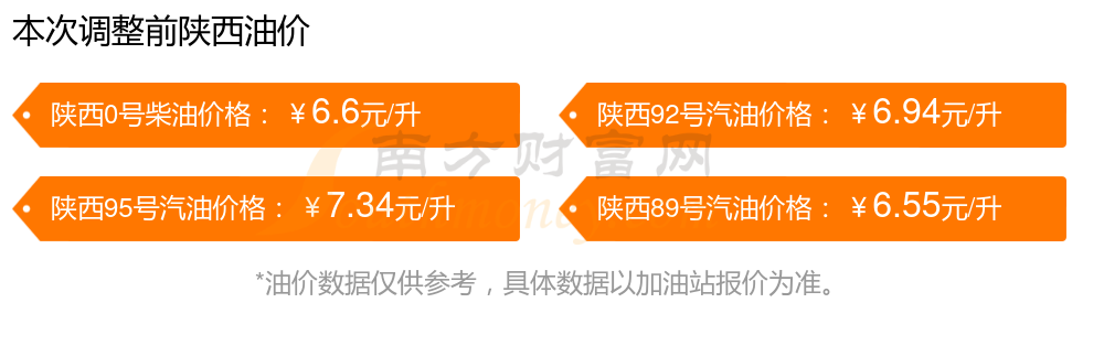 11月10日陜西汽油、柴油每升的最新價格:92號汽油6.73元;95號汽油7.11元;89號汽油6.35元,降了0.2;0號柴油6.38元,本輪油價的調(diào)整時間是10月28日。