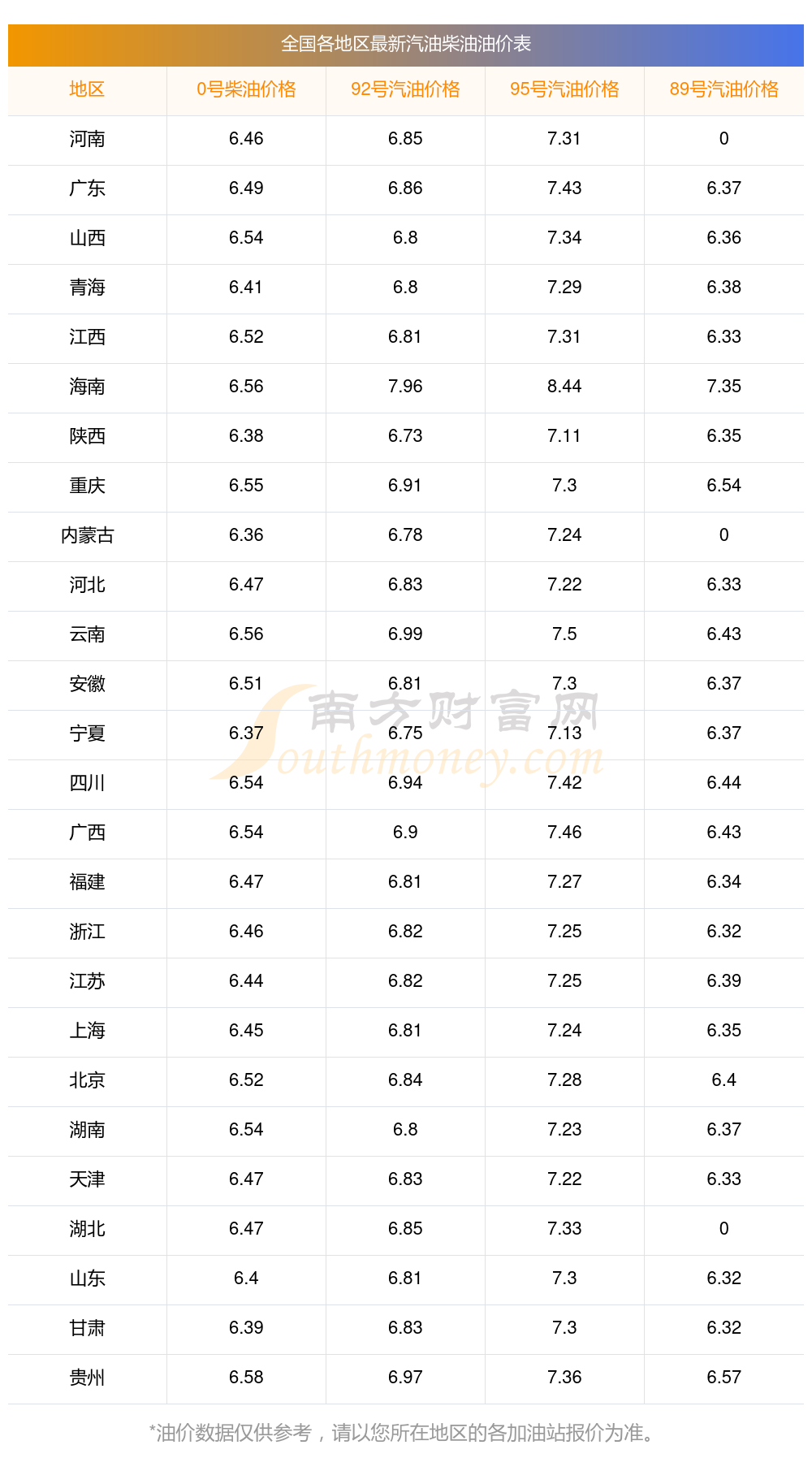 2025年11月10日全國(guó)油價(jià)調(diào)整及最新汽油價(jià)格表