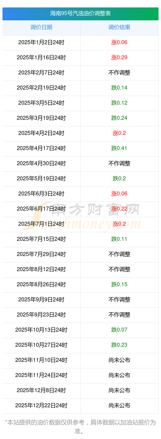 7月油價調整時間:7月1日、7月15日、7月29日