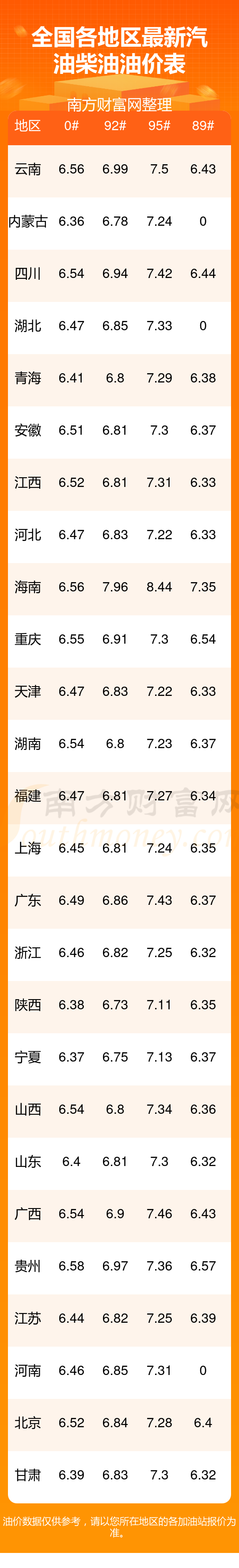 本站提供的油價數(shù)據(jù)僅供參考,具體數(shù)據(jù)以加油站報價為準。