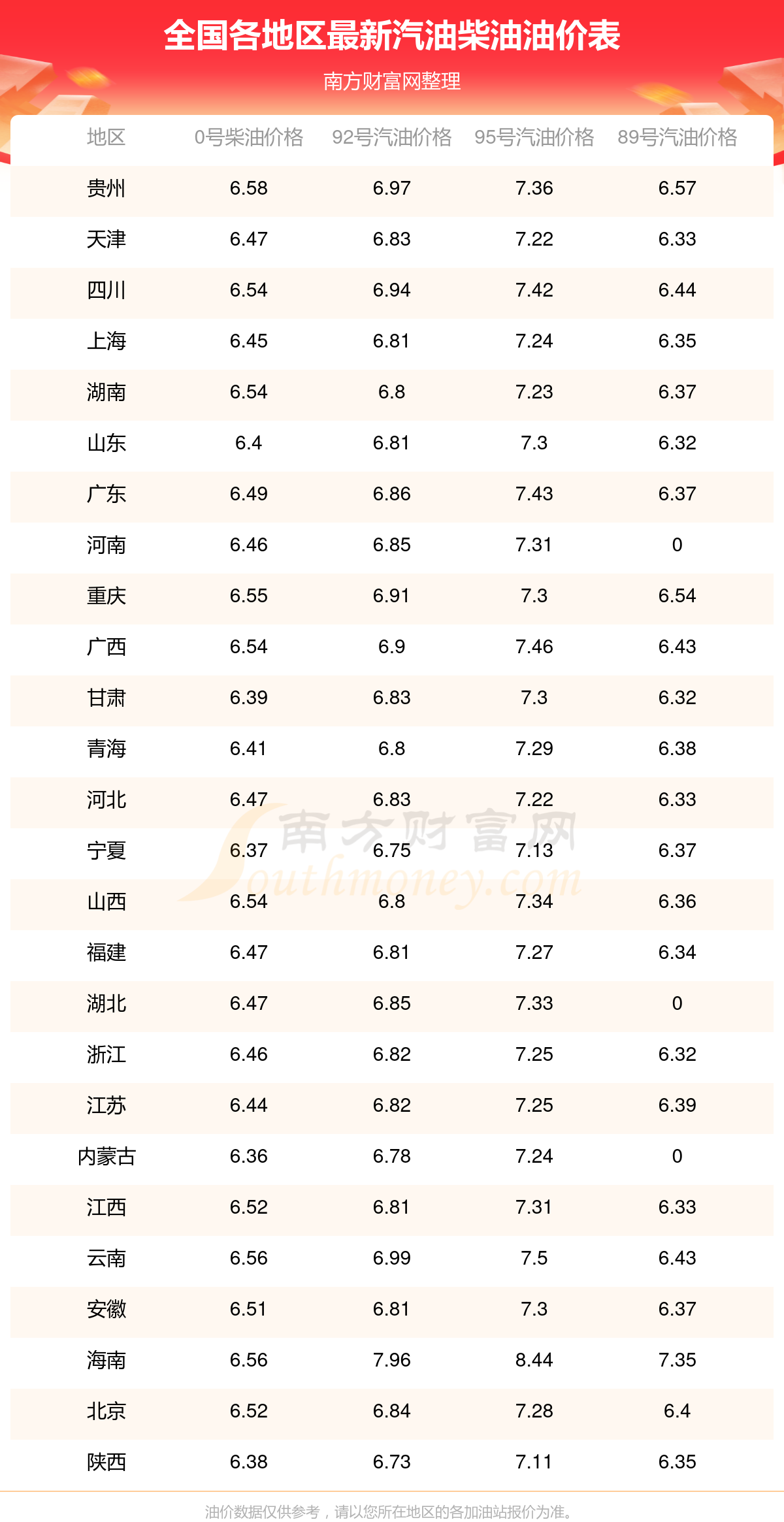 油價數(shù)據(jù)僅供參考,請以您所在地區(qū)的各加油站報價為準(zhǔn)。