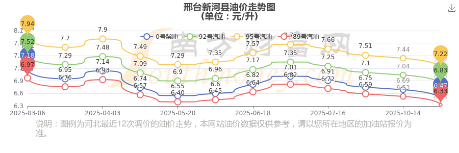 邢臺(tái)新河縣11月10日0號(hào)柴油歷史油價(jià)調(diào)整走勢(shì)圖
