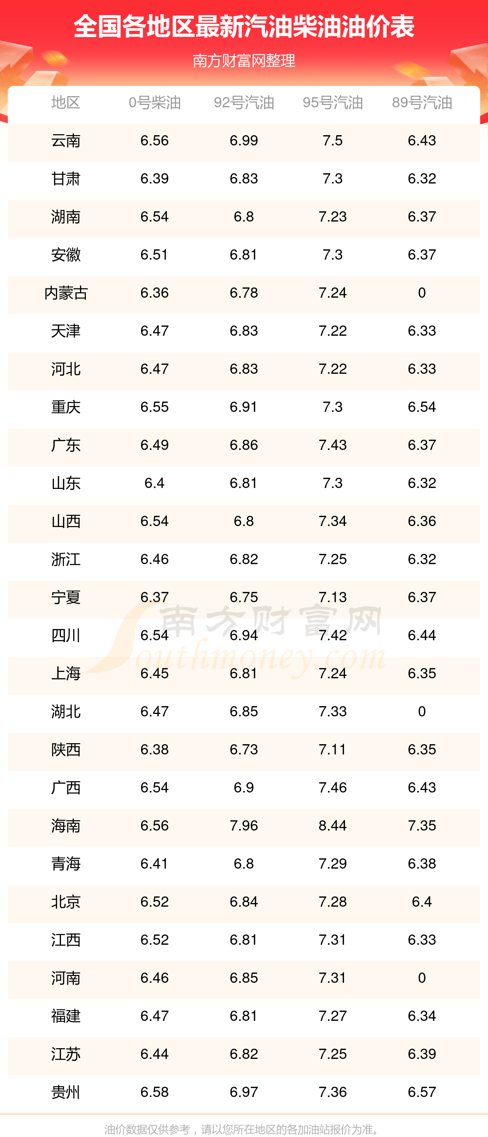 全國(guó)各地區(qū)2025年最新汽油價(jià)格表
